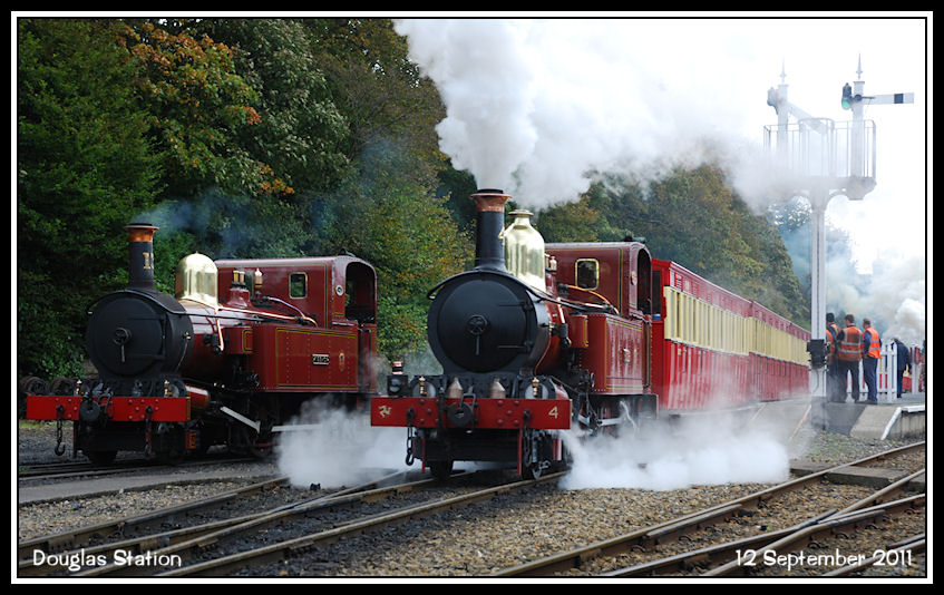 Train CYG2, with Loch at the head, makes a spirited departure, non-stop to Castletown