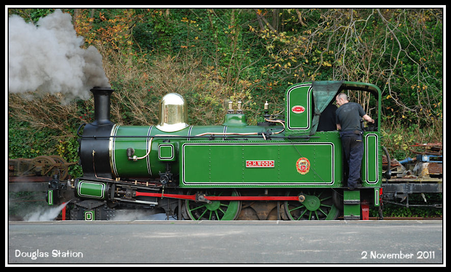 IOMR No 10 'G.H.Wood' shunts in the station to bank the 09:50 to Port Erin
