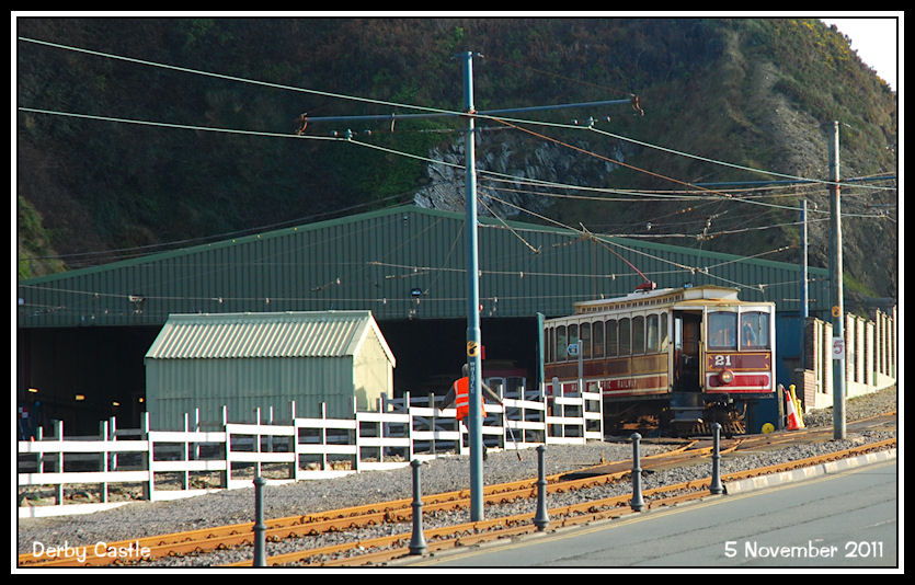 Manx Electric Railway Car No 21 moves off depot