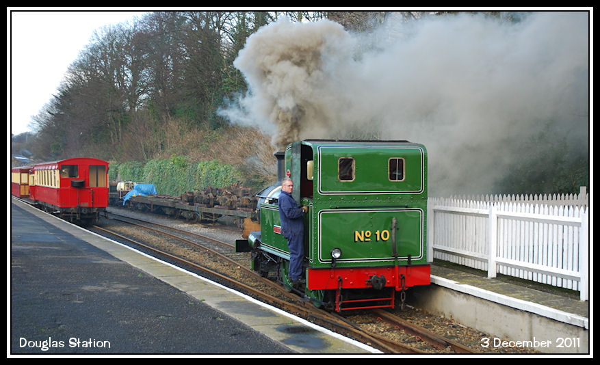 On the first day of the 2011 Christmas season specials, No 10 'G.H Wood' positions to bank the 09:50 to Castletown