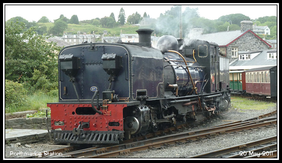Welsh Highland No 87 stands in the station