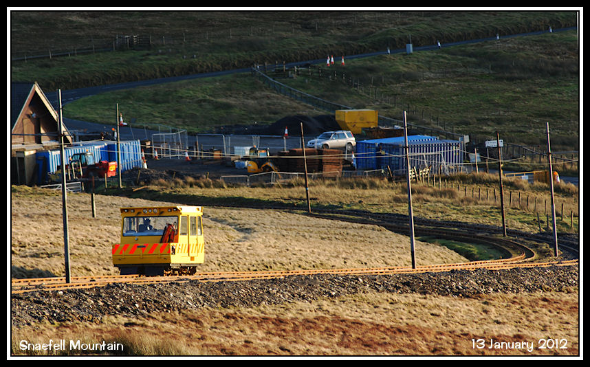 The NATS railcar approaches Bungalow, before crossing the Mountain Road and heading for Laxey