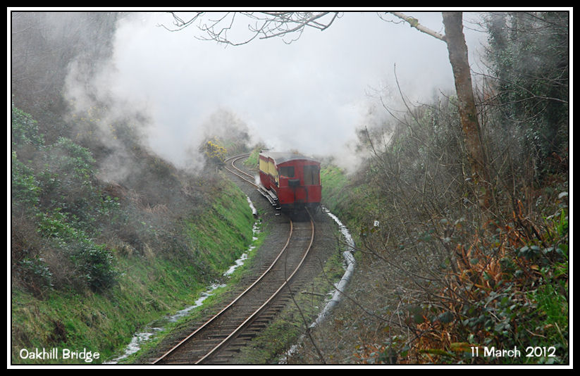 The 09:50 to Port Erin winds through the wider part of Oakhill cutting