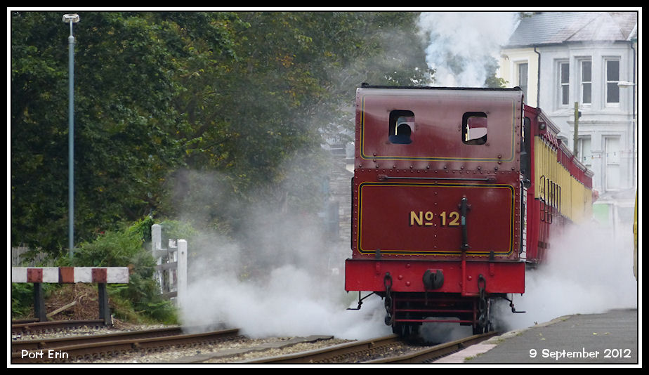 Wreathed in steam and smoke, 'Hutchinson' head out towards Port St Mary