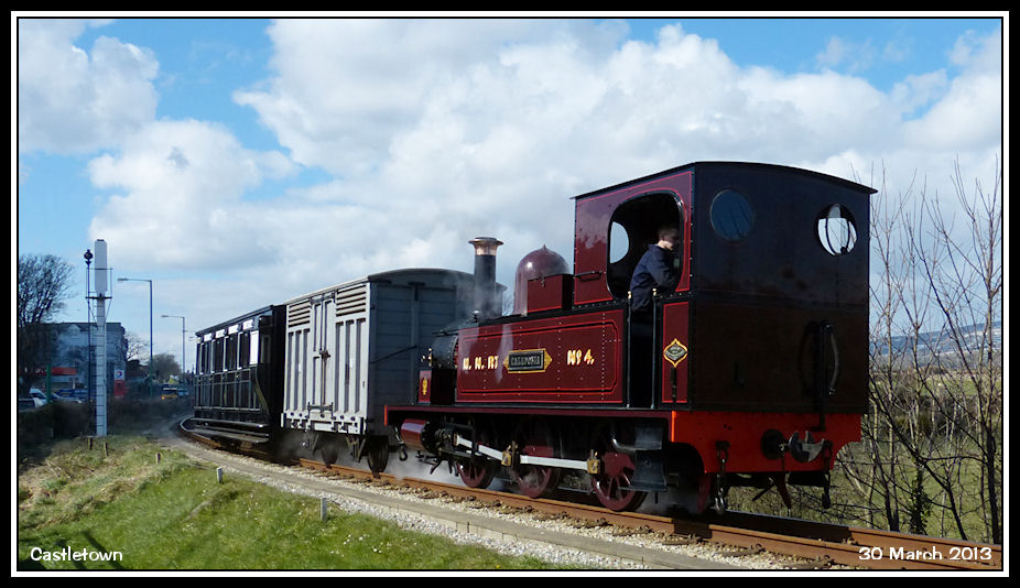 'Caledonia' arrives at Castletown from Port Erin, passing the rare 'slotted' signal in the off position