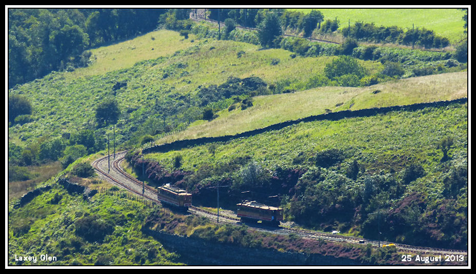 Ascending Car No 4 waits for No 5 to pass before crossing to run 'wrong line' to Bungalow