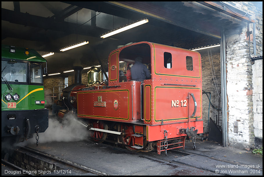 No 12 'Hutchinson' moves off shed ready to head the 11:00 'Santa Special' to Santon