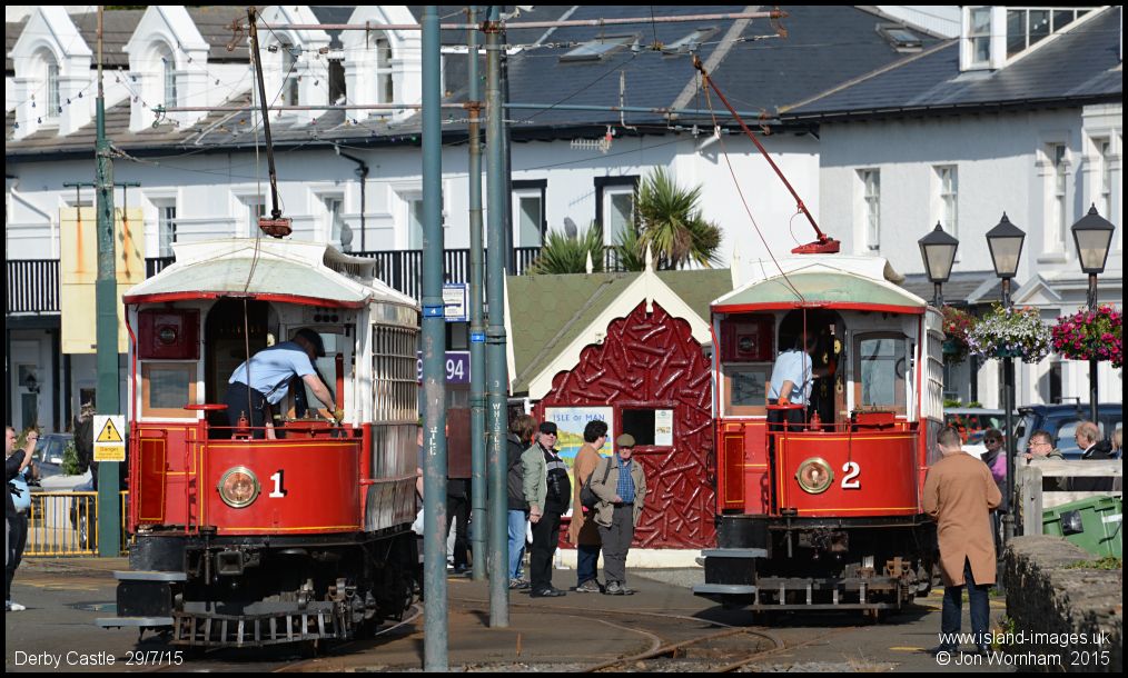 Cars o 1 & 2 at the station being prepared for a parallel run to Groudle