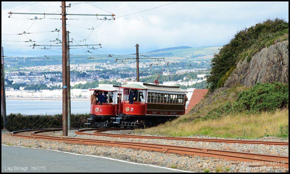 Cars No 1 & 2 climb away from Douglas, just leaving the built up area of Onchan, heading for Groudle