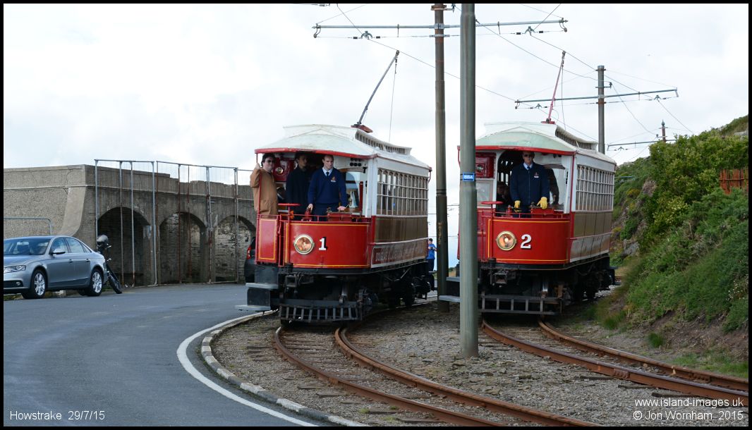 Cars No 1 & 2 on the curve, with the old shelter once serving the holiday camp on the left