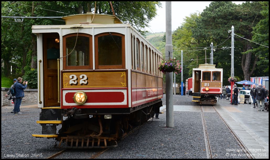 Cars No 22 & 21 in the station, two of the four 'Winter Saloons' delivered in 1899, although 22 was rebuilt in 1992