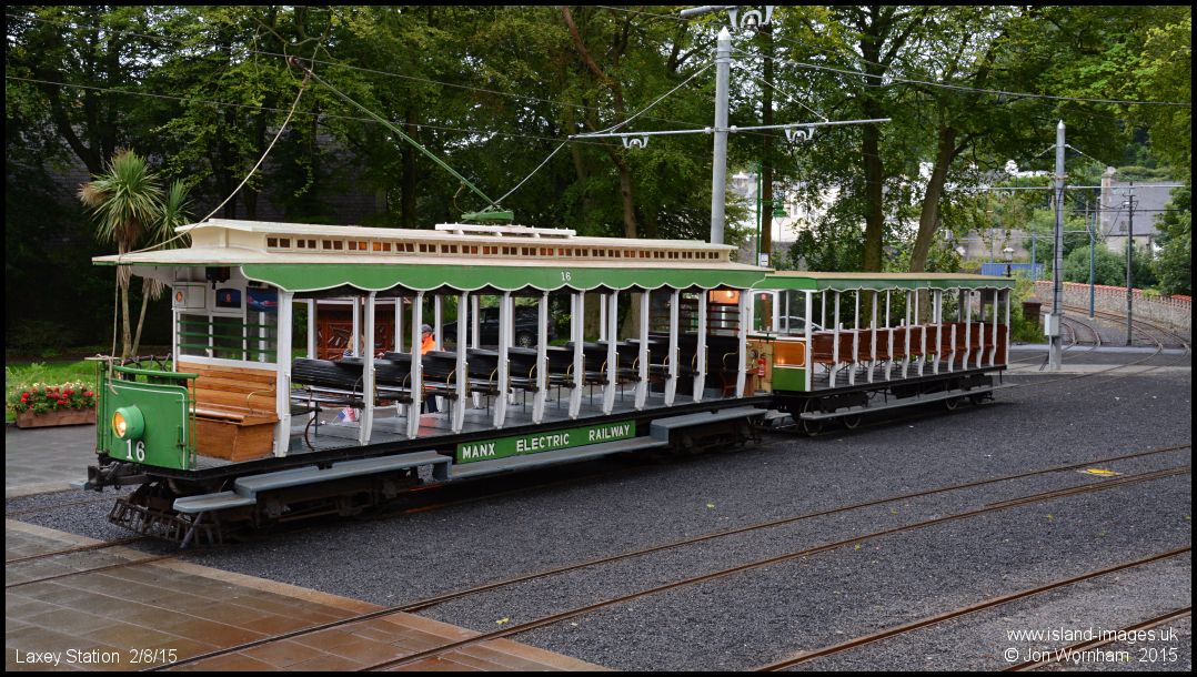 Car No 16 with matching green liveried trailer No 60 ready to move to the Laxey car sheds