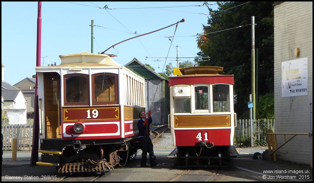 Moving the trolley pole before shnting the trailer back into the station by manpower and gravity!