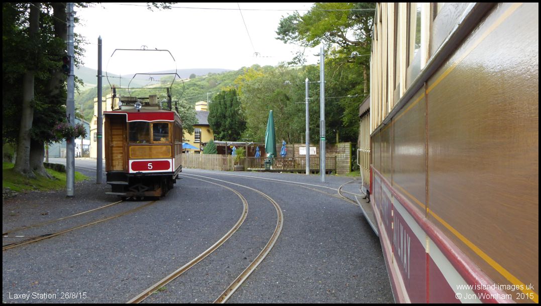 A short pause at Laxey as Snaefell Car No 5 arrives with the last service down from the summit