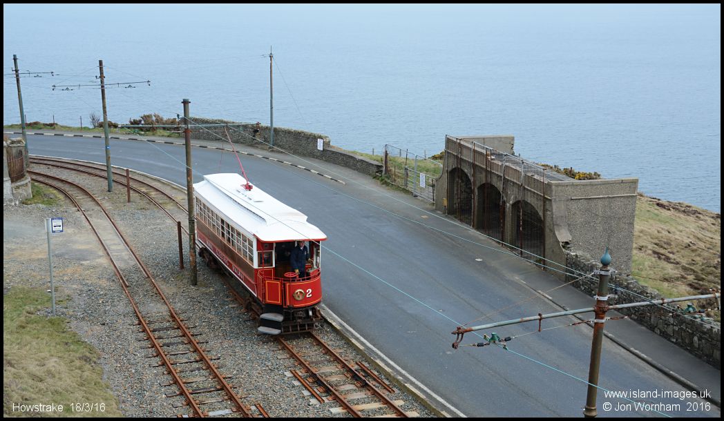MER Car No 2 passing the shelter that used to serve the Howstrake Holiday Camp. No 2 dates from the opening of the line from Douglas to Groudle in 1893.