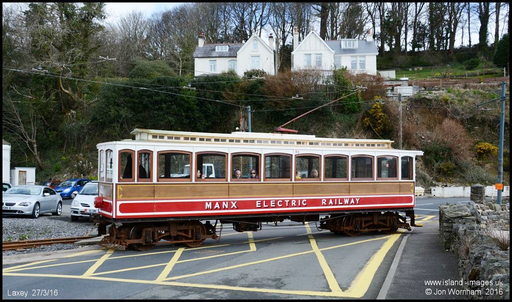 Car No 21 on the first of three road crossings before entering Laxey Station