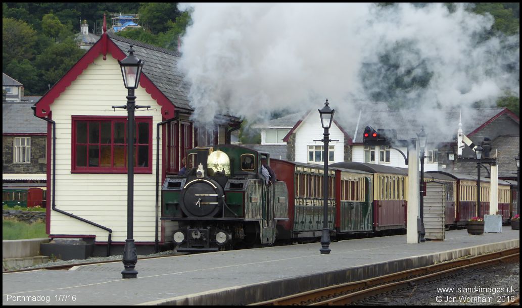 'Iarll Merionedd' heads away with a Blaenau Ffestiniog bound train