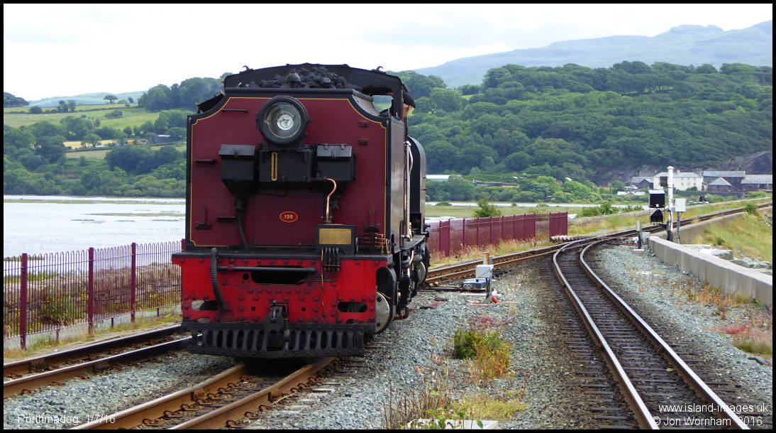 After uncoupling from the train, WHR No 138 heads across the Cob to Bston Lodge