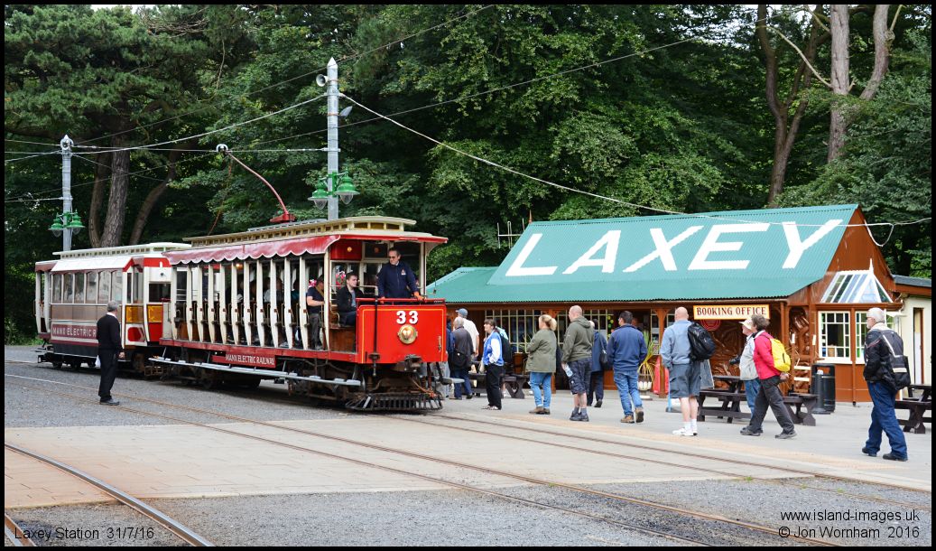 Open crossbench Car No 33 arriving at Laxey from Ramsey