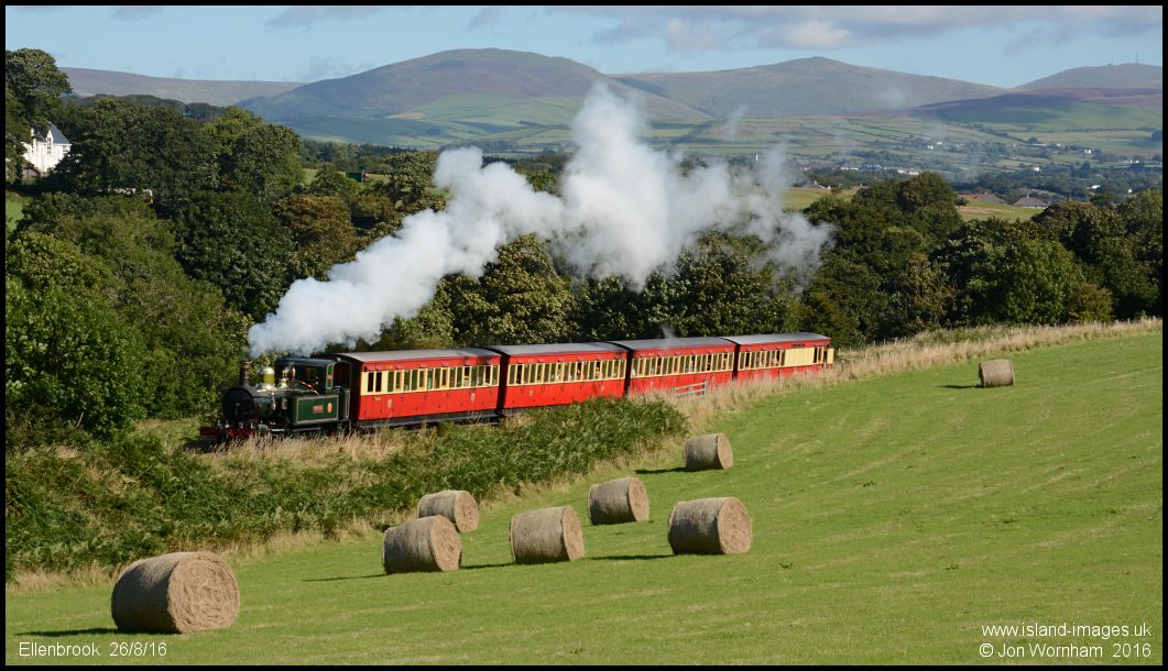 With the central mountains as backdrop, No 13 'Kissack' is on the climb up to Oakhill passing Ellenbrook, operating the 09:50 Douglas to Port Erin