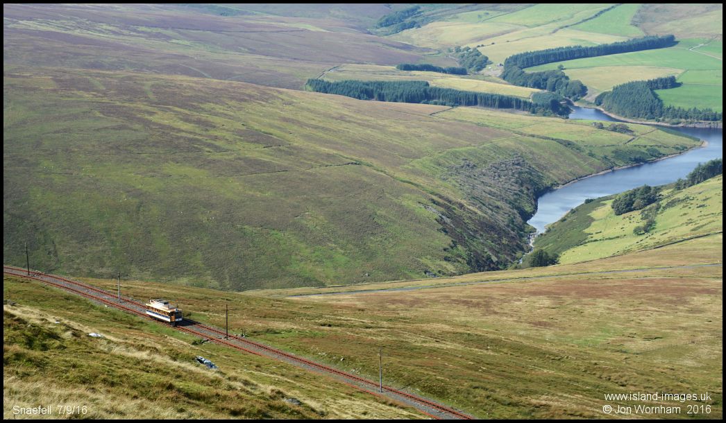 Dwarfed by its surroundings, Car No 1 on the climb from Bungalow to summit