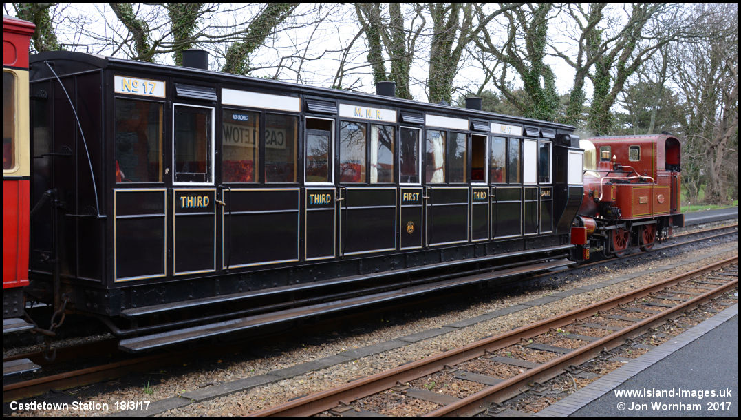 First coach of 'Fenella's' train is F39 the 'Foxdale Coach'. Constructed in 1887 for the Manx Northern Railway as their No 17 and operated for many years between St John's and Foxdale