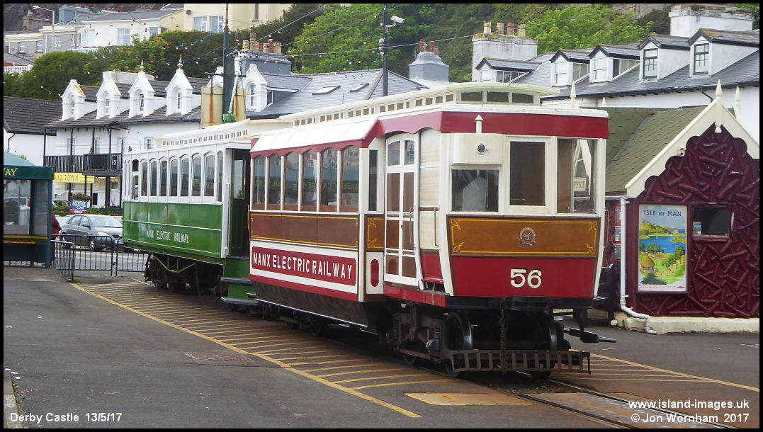 Manx Electric Railway Car No 21 has just arrived at Derby castle towing trailer No 56