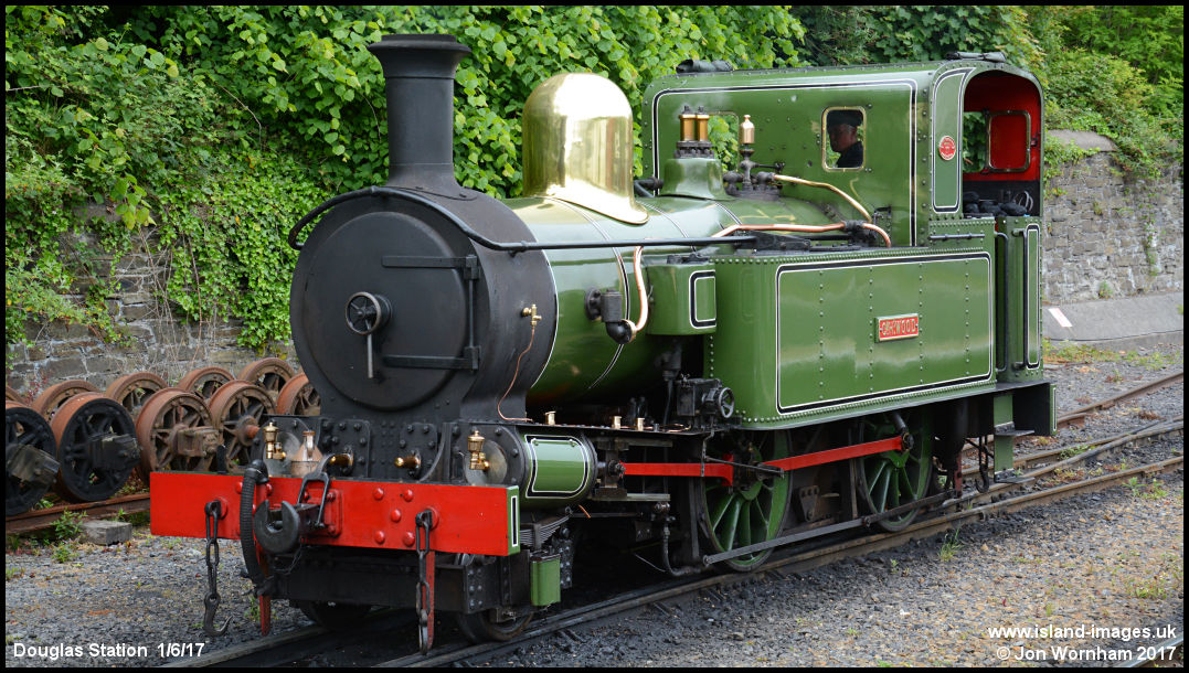 'G.H. Wood' on the engine release road, awaiting the arrival of the train from Port Erin.