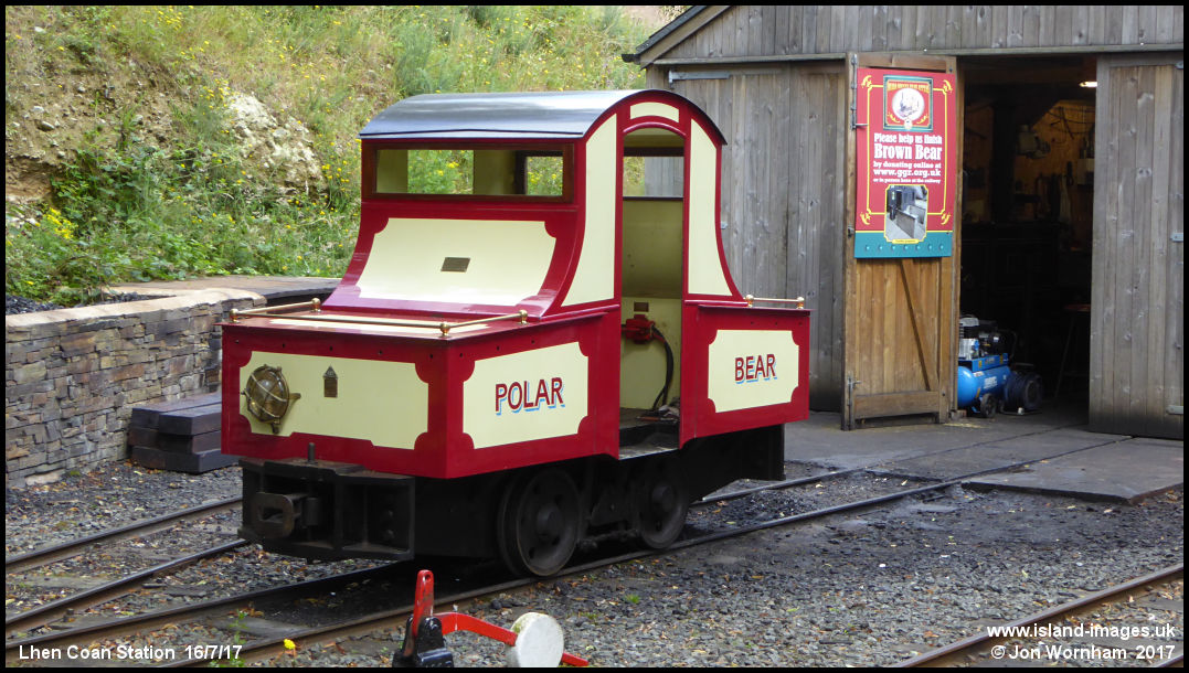 Battery electric loco 'Polar Bear' on the Groudle Glen Railway at Lhen Coan