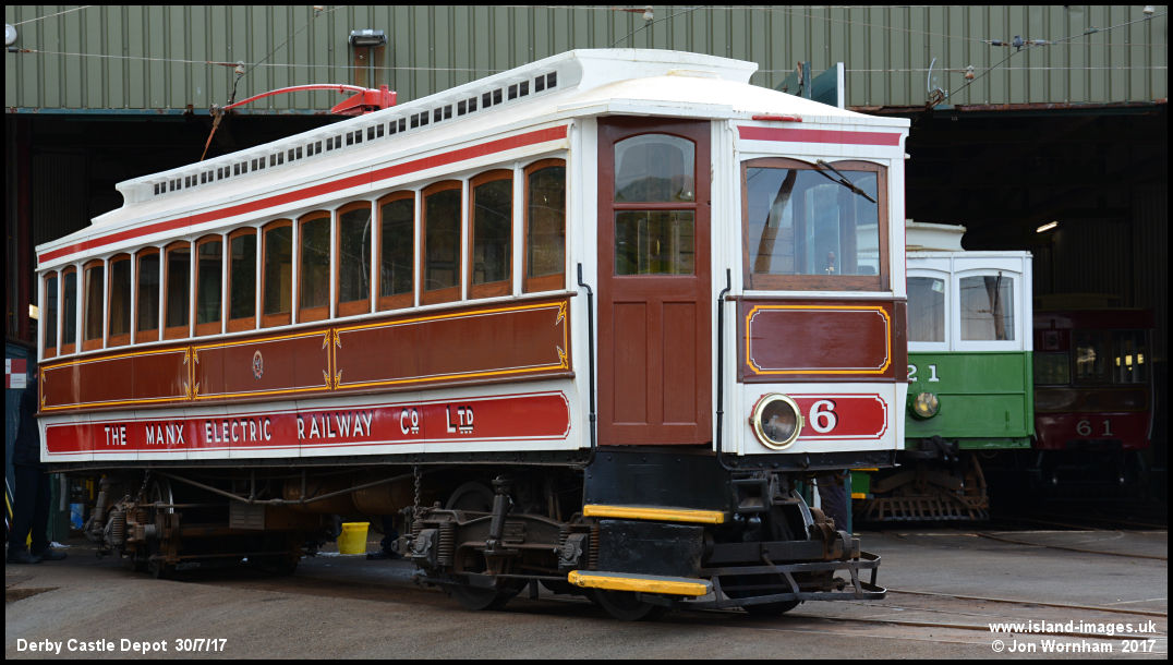 It's the fifth and final day of the 2017 Heritage Transport Festival and Car No 6 is looking great outside the depot, ready for a day of intensive services on the Manx Electric Railway