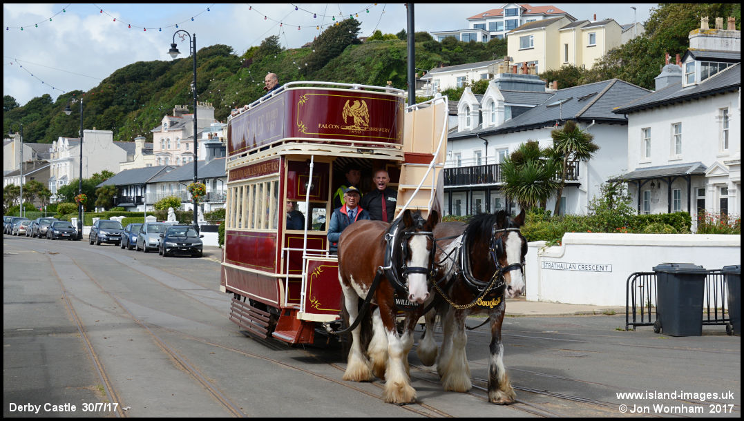 An unexpected treat today was to see double deck Horse Tram No 18 being 'double headed' by Willaim and Douglas