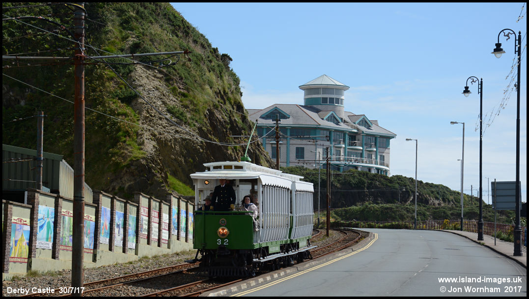 Car No 32 returning from Ramsey, running past the depot at Derby Castle