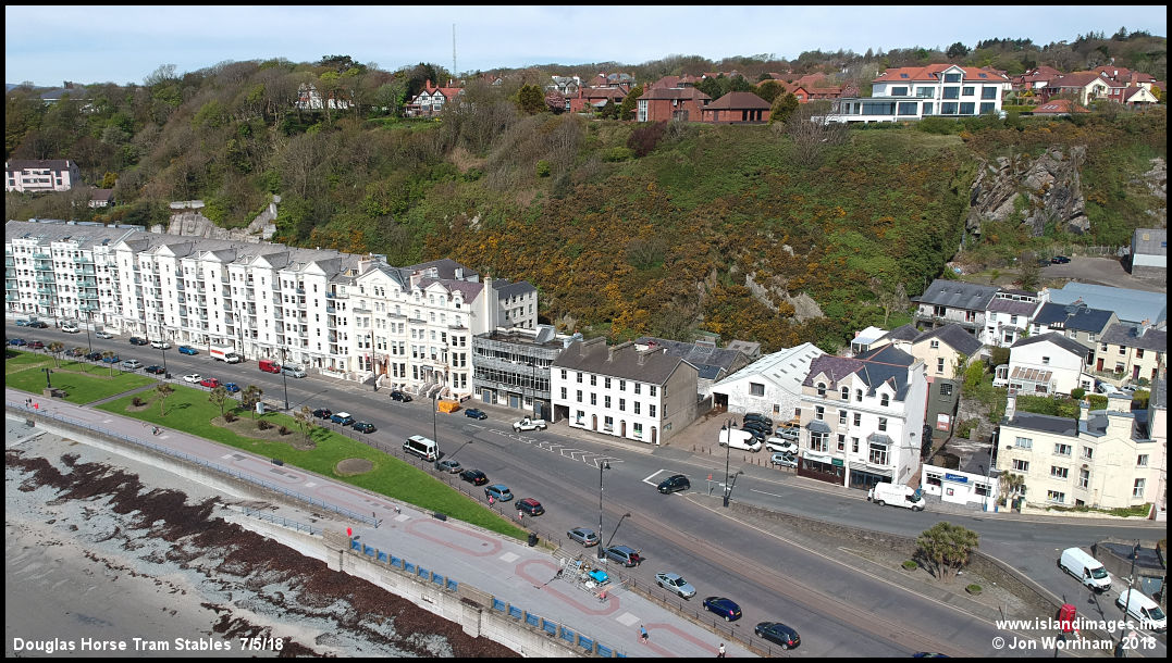The Douglas Bay Horse Tramway stables (white building in picture centre) at the bottom of Summerhill