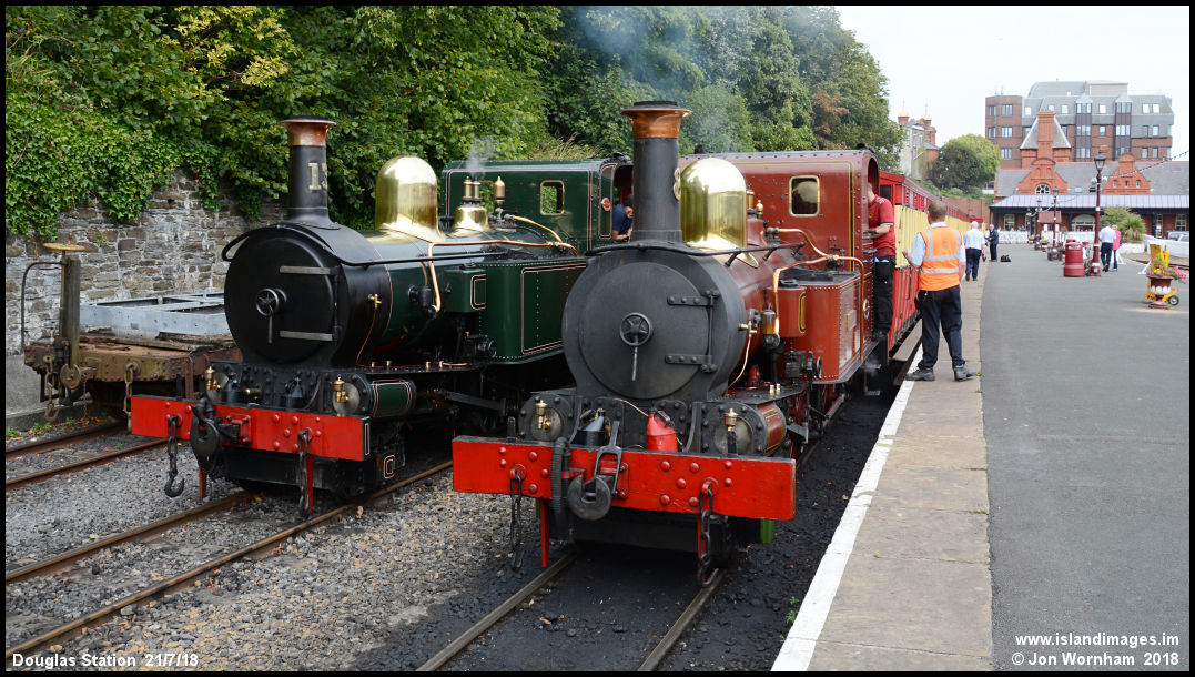 'Kissack' and 'Fenella' pose together in Douglas Station.