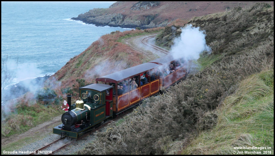 The train heads back to Lhen Coan along the cliff tops above Groudle Bay.