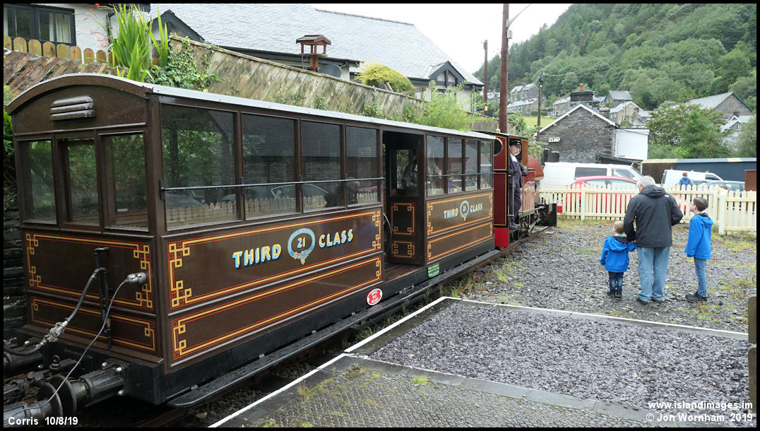 Coach No 21 with loco No 7 on arrival back at Corris.