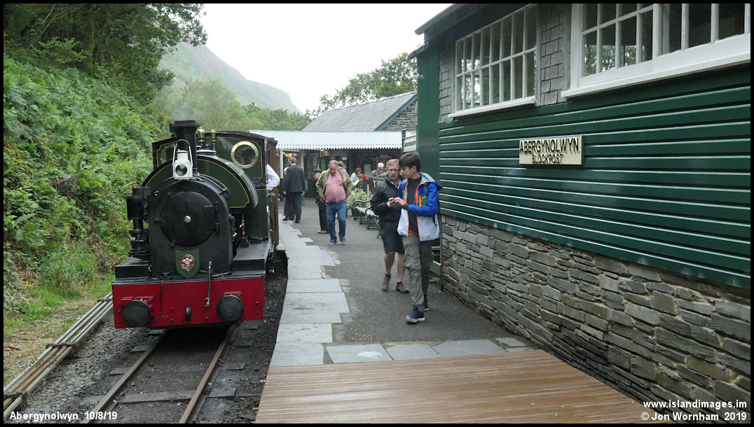 Headed by 'Edward Thomas', our train pauses at Abergyolwn for refreshments to be taken. For many years this was the terminus for passenger trains, the line continuing onwards for freight only.