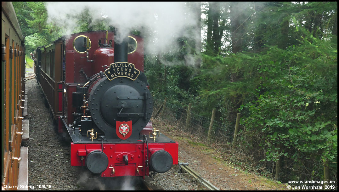 'Dolgoch' passing by. The headboard is because it was 'Young Members Day' when the youngest qualified members of the society operate the railway.