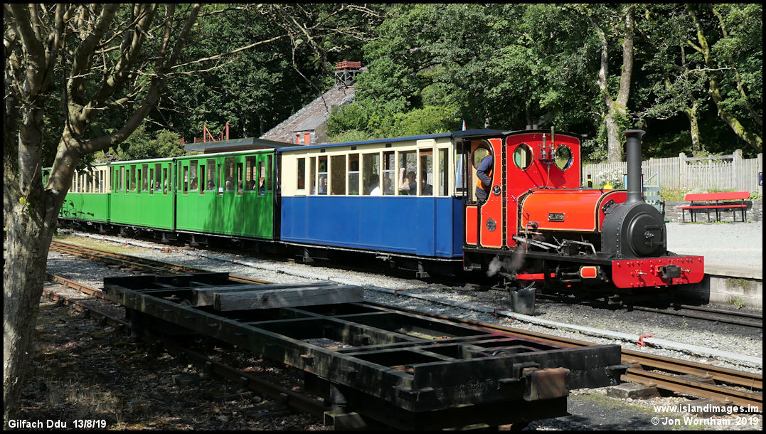 'Elidir' arriving at Gilfach Dhu where the locomotive will be serviced before continuing with the journey. This is the oldest of the locos still in service here and was delivered to the quarry in 1889.