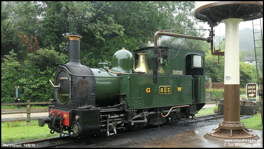 Ready to top up the water tanks on 'Countess' at Welshpool Raven Square station. Delivered to the W&L from Beyer Peacock in 1902 and subsequently owned by the Great Western Railway and British Railways.