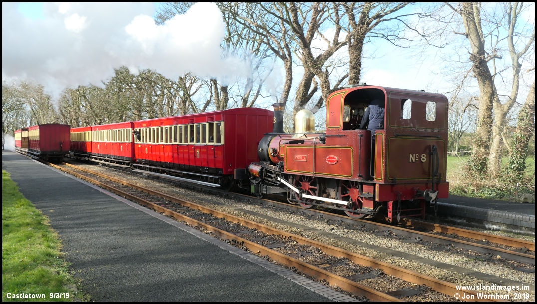With the single line tokens exchanged, 'Fenella' departs for Ballasalla and Douglas.