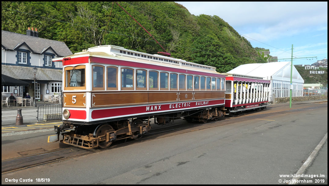 Having finished its roster for the day, Car No 5 propels trailer 41 to the depot.