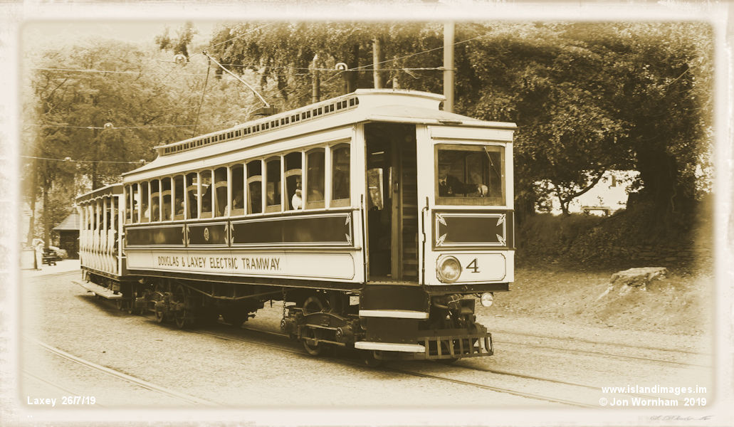 MER 'Car No4' departs from Laxey station. The real No 4 was delivered to the railway in 1894 but lost in the Laxey depot fire of 1930 and never replaced.