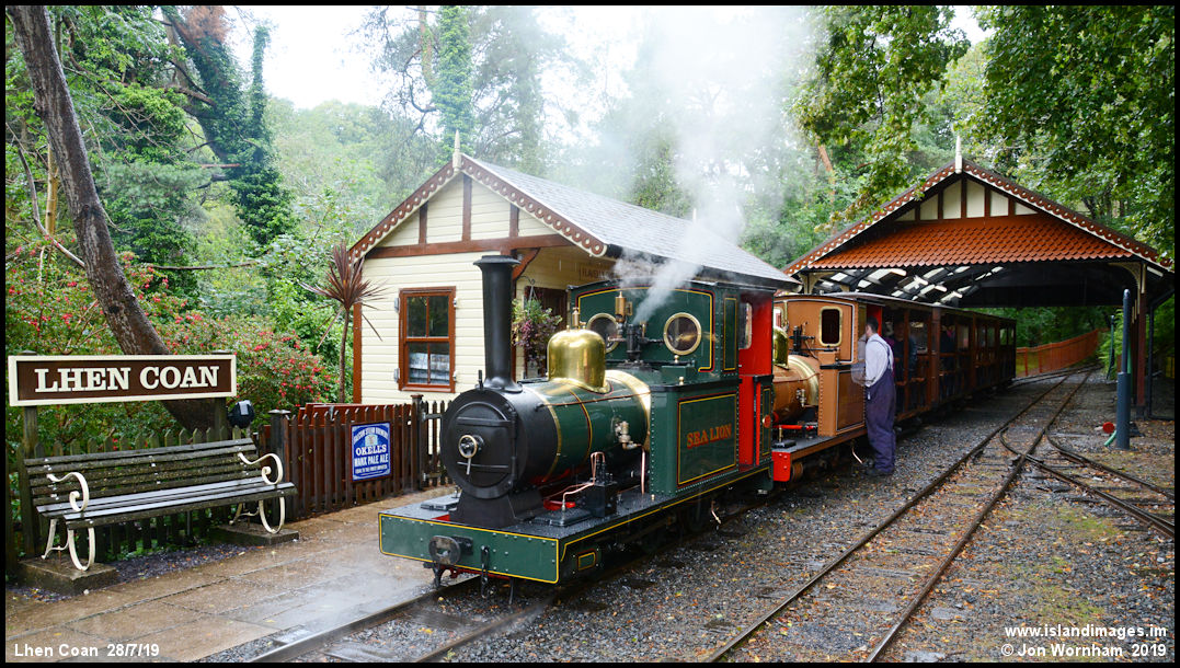 This time with 'Sea Lion' leading, the two locos are ready for departure from Lhen Coan.