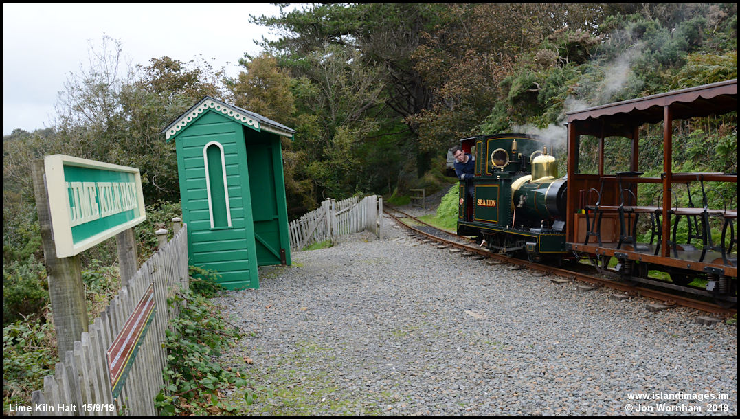 'Sea Lion' pauses at Lime Kiln Halt to pick up some passengers.