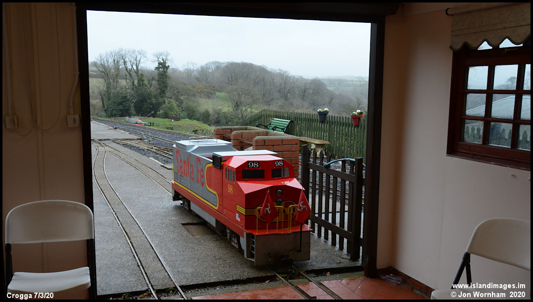 'Sante Fe' framed in the loco shed entrance of the Crogga Valley Railway, ready for the first public operating day for 2020.