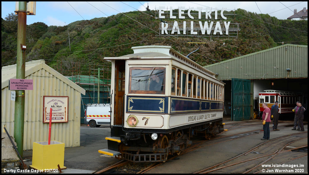 Blue liveried Car No 7 coming out of the depot for drying out runs to Groudle and back.