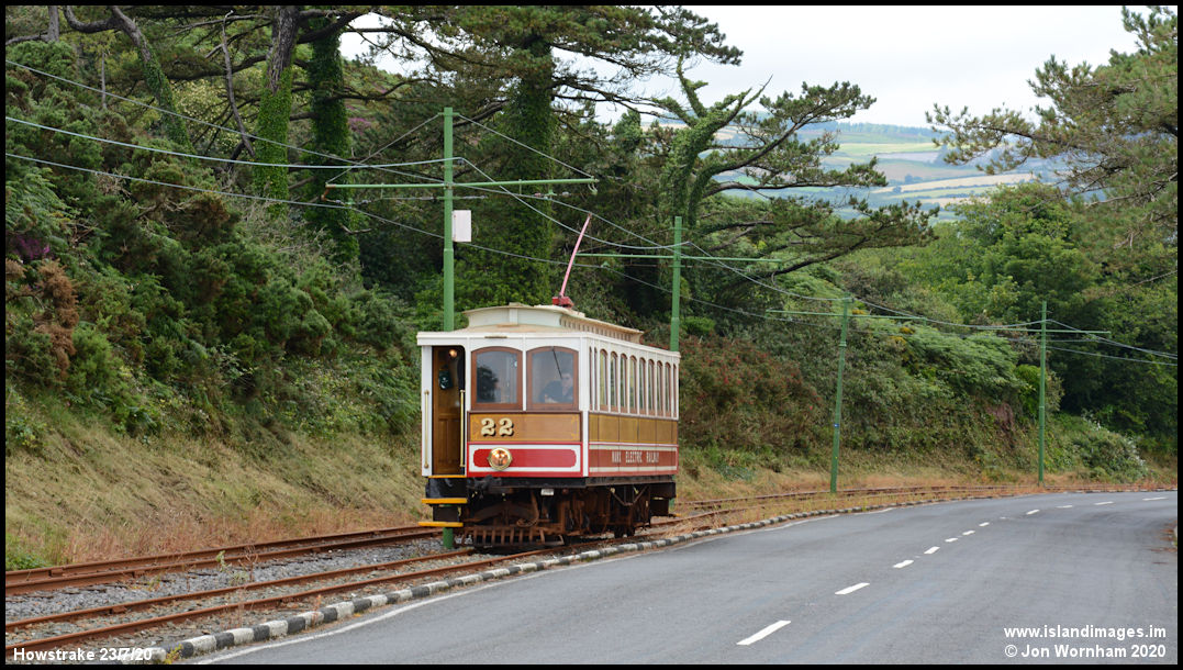'Winter Saloon' Car No 22 on the climb up from Groudle to Howstrake. Despite appearances this isn't the original Car No 22 from 1899, but a 1991 rebuilt body on the original underframe and bogies after a disastrous fire the previous year.