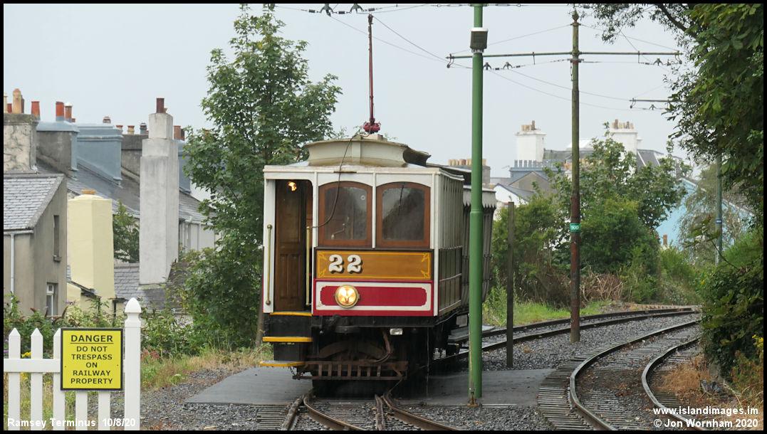 Car No 22 starting the shunting manoeuvre at Ramsey after arriving from Douglas.