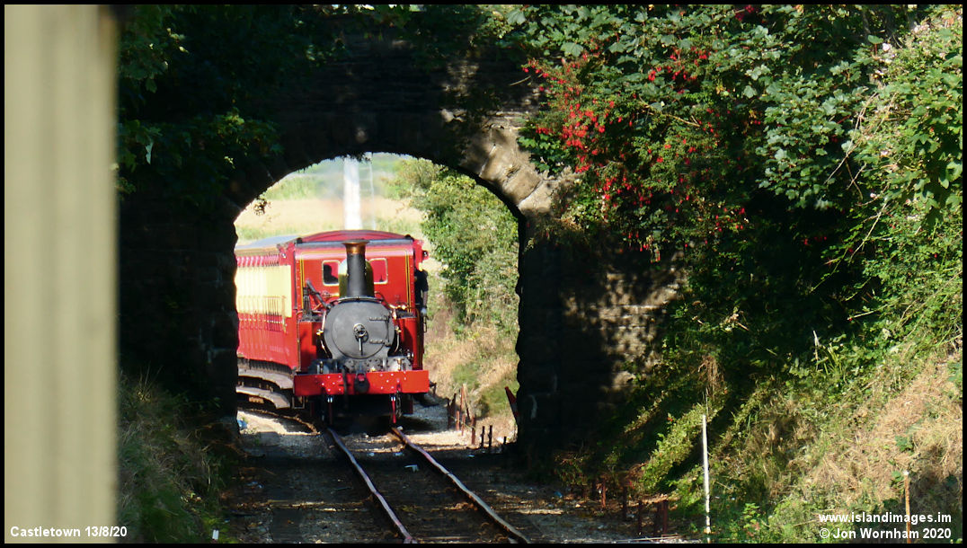 After being held at the home signal, No 8 'Fenella' starts off again towards Castletown Station.